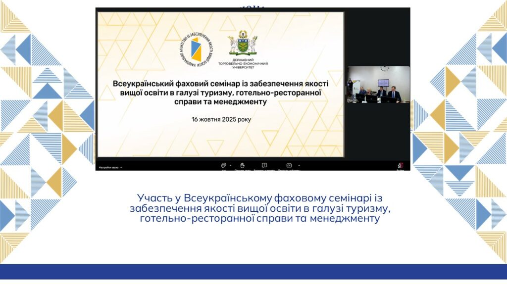 - Участь у Всеукраїнському фаховому семінарі із забезпечення якості вищої освіти в галузі туризму, готельно-ресторанної справи та менеджменту