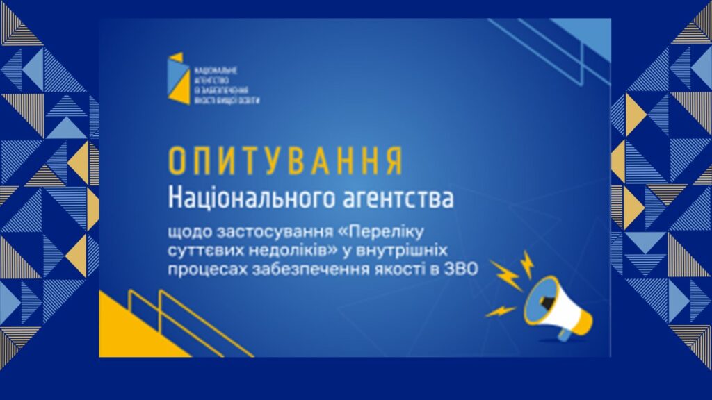 - Опитування Національного агентства щодо застосування «Переліку суттєвих недоліків» у внутрішніх процесах забезпечення якості