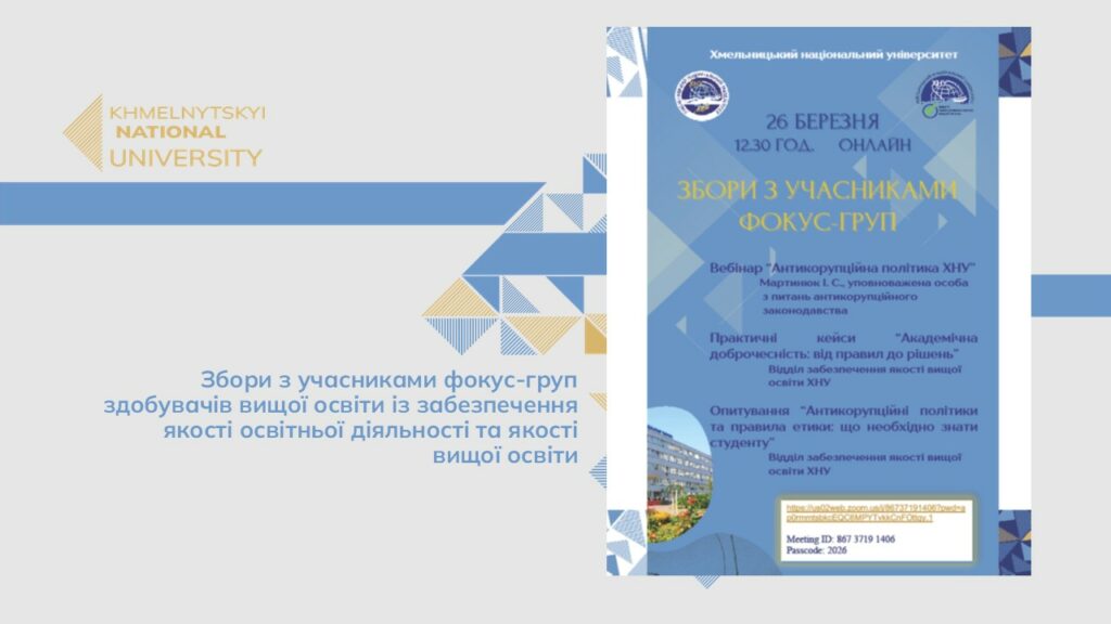 - Анонс – 26 березня збори з учасниками фокус-груп здобувачів вищої освіти із забезпечення якості освітньої діяльності та якості вищої освіти