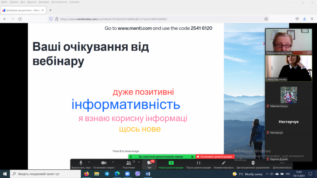 Під час вебінару здобувачі вищої освіти ознайомилися з етапами вибору вибіркових дисциплін в університеті, взяли участь в інтерактивних опитуваннях та анкетуванні щодо дотримання академічної доброчесності учасниками освітнього процесу.