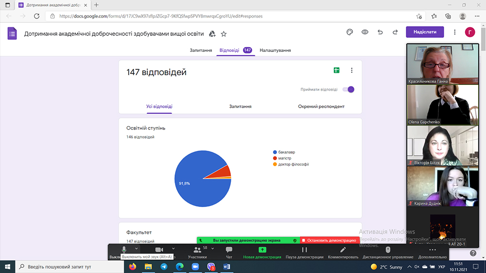 Загальна чисельність представників усіх восьми факультетів, які взяли участь у вебінарі впродовж двох днів, – понад 100 здобувачів бакалаврського, магістерського та освітньо-наукового рівнів вищої освіти.