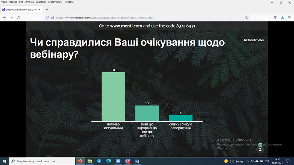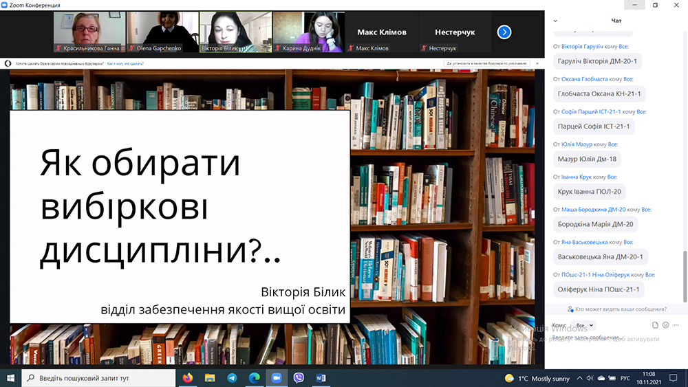 9-10 листопада 2021 року для учасників фокус-груп здобувачів вищої освіти із забезпечення якості освітньої діяльності та якості вищої освіти проведений вебінар «Як обирати вибіркові дисципліни?!».