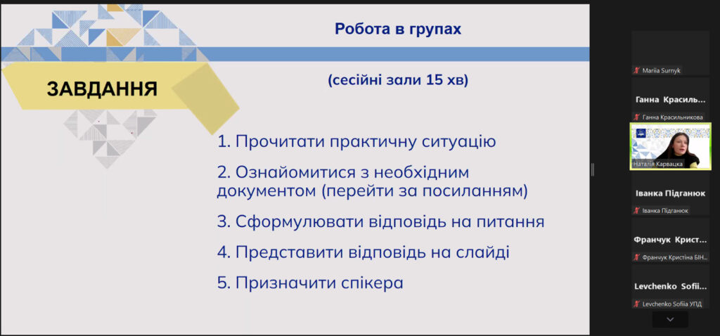 На заключному етапі зустрічі представники кожної підгрупи учасників презентували свої результати розв’язання кейсів, дискутували, висловлювали пропозиції щодо вирішення запропонованих ситуацій. Дякуємо усім за увагу до питань академічної доброчесності.