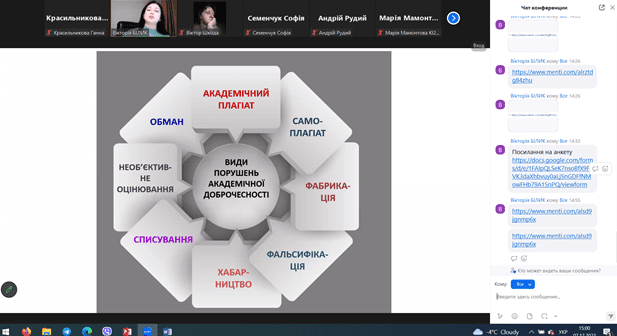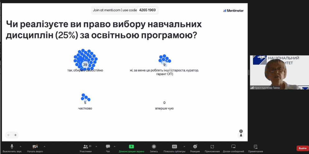 На завершення зустрічі учасники зборів пройшли опитування за анкетою «Особливості організації освітнього процесу під час війни та академічної доброчесності у Хмельницькому національному університеті» та отримали завдання розповсюдити анкету серед своїх одногрупників.