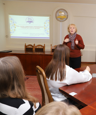 З вітальним словом до учасників зібрання звернулася завідувачка Відділу забезпечення якості вищої освіти Ганна КРАСИЛЬНИКОВА. З роз’ясненням ролі членів студентського самоврядування у процедурах акредитації освітніх програм виступів завідувач відділу ліцензування, акредитації, моніторингу освітнього процесу та видачі документів про вищу освіту Ігор АНДРОЩУК.