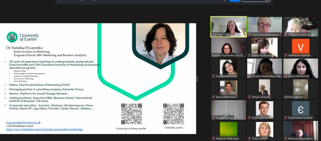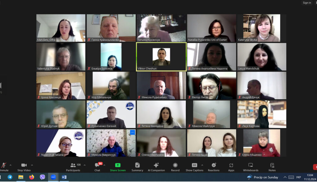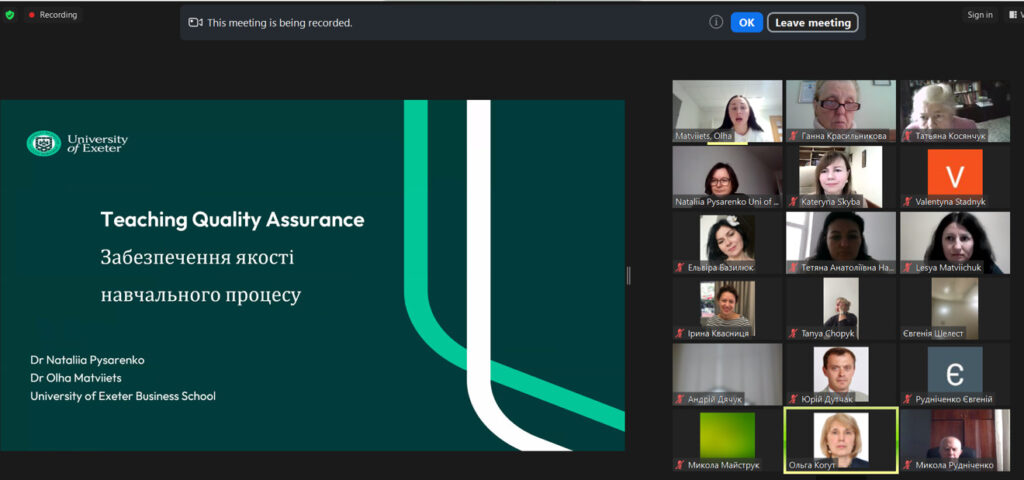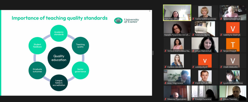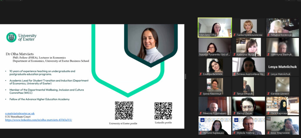 11 грудня 2024 року завершилися курси підвищення кваліфікації науково-педагогічних працівників університету «Сучасне викладання: виклики, інструменти та цілі сталого розвитку». Змістовний виступ викладачів університету Exeter (Великобританія) Наталії ПИСАРЕНКО та Ольги МАТВІЄЦЬ на тему «Забезпечення якості вищої освіти» викликав жвавий інтерес слухачів курсів.