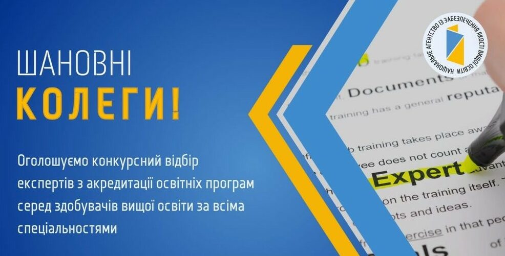 Національне агентство із забезпечення якості вищої освіти оголошує конкурсний відбір експертів з акредитації освітніх програм серед здобувачів вищої освіти за всіма спеціальностями.