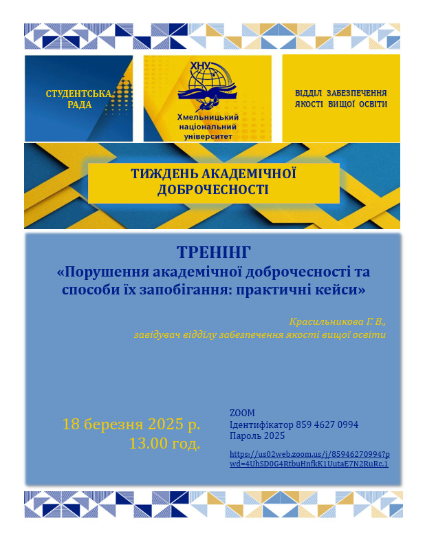 Тренінг “Порушення академічної доброчесності та способи їх запобігання: практичні кейси”18.03.202505.08.2025