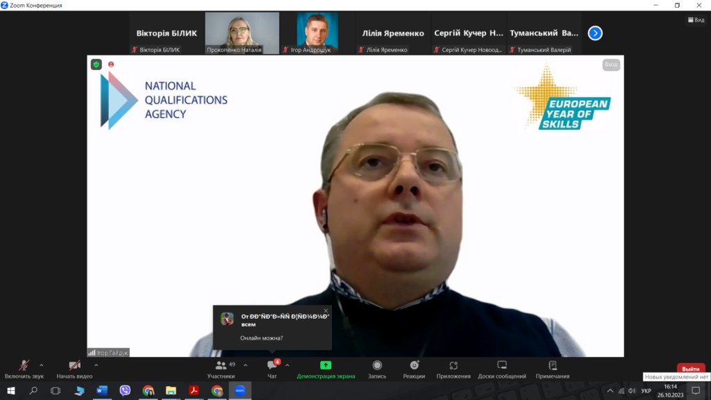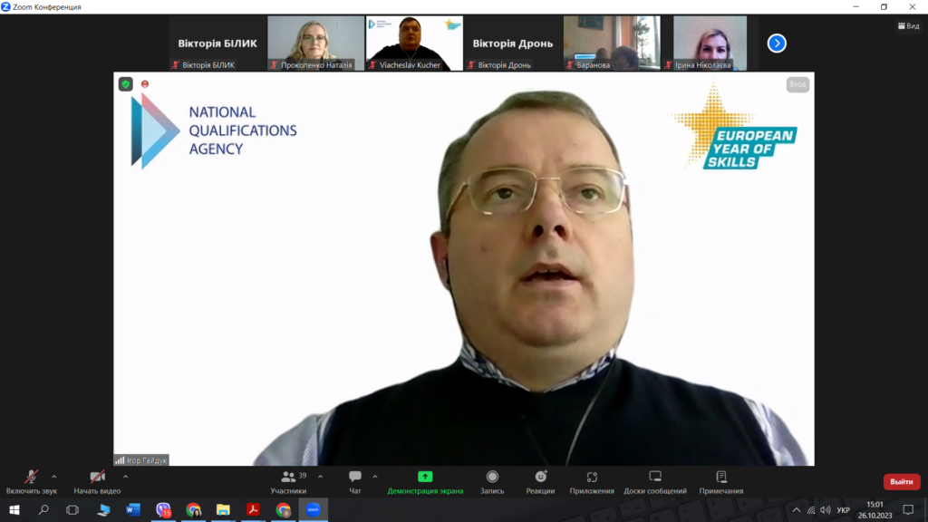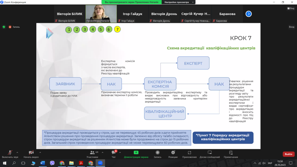 26 жовтня 2023 року співробітники відділу забезпечення якості вищої освіти взяли участь у вебінарі на тему: «Кваліфікаційні центри. Правовий статус. Окремі аспекти створення та акредитації» проведеного Національним агентством кваліфікацій.