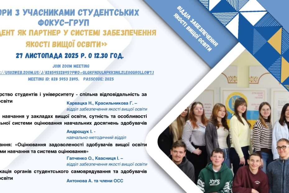 Відбулися збори учасників студентських фокус-груп на тему «Студент як партнер у системі забезпечення якості вищої освіти»27.11.202513.12.2025