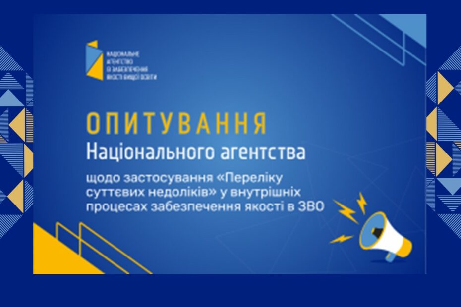 Опитування Національного агентства щодо застосування «Переліку суттєвих недоліків» у внутрішніх процесах забезпечення якості02.12.202503.12.2025