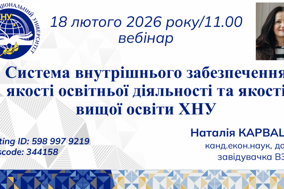 Виступ на на тему “Система внутрішнього забезпечення якості освітньої діяльності та якості вищої освіти ХНУ”18.02.202623.02.2026