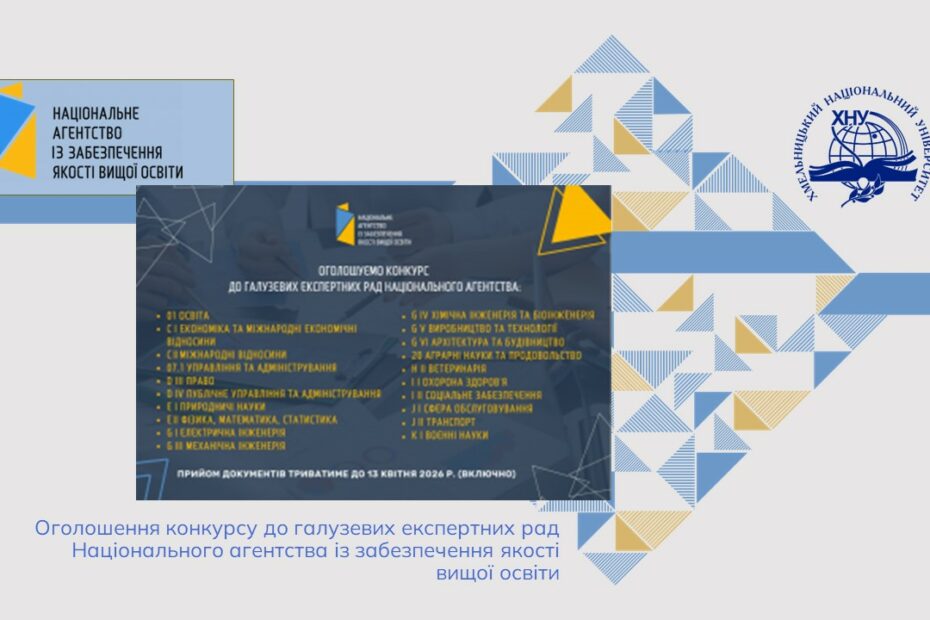 Оголошення конкурсу до галузевих експертних рад Національного агентства із забезпечення якості вищої освіти30.03.202630.03.2026