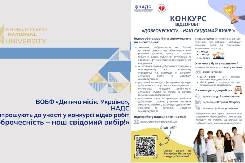Анонс – Конкурс “Доброчесність – наш свідомий вибір!” від ВОБФ “Дитяча місія. Україна” та НАДС17.04.202617.04.2026