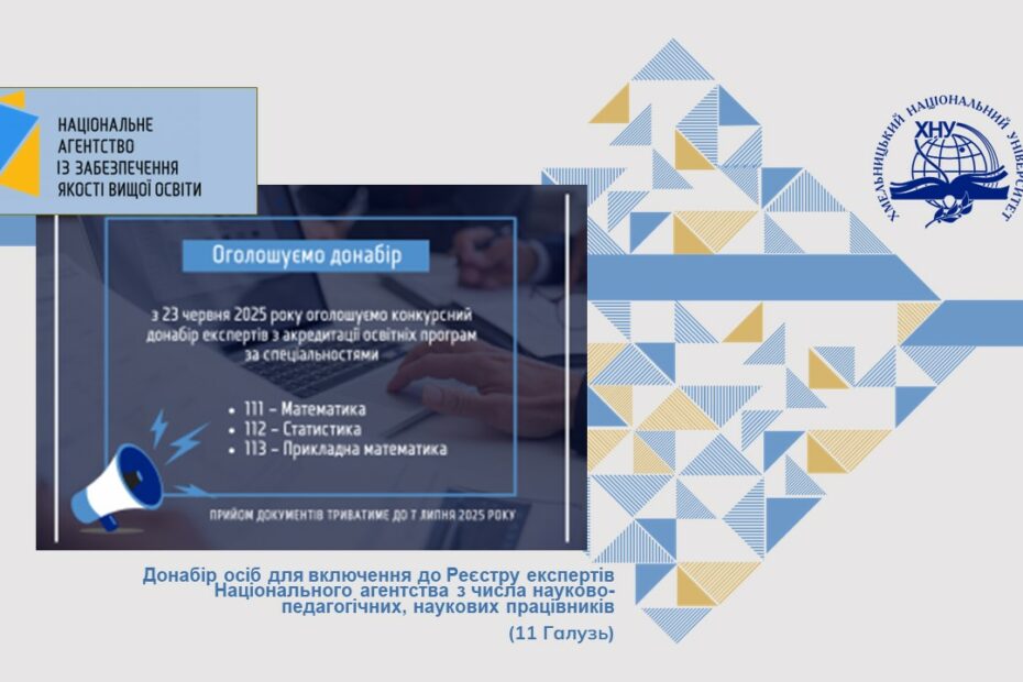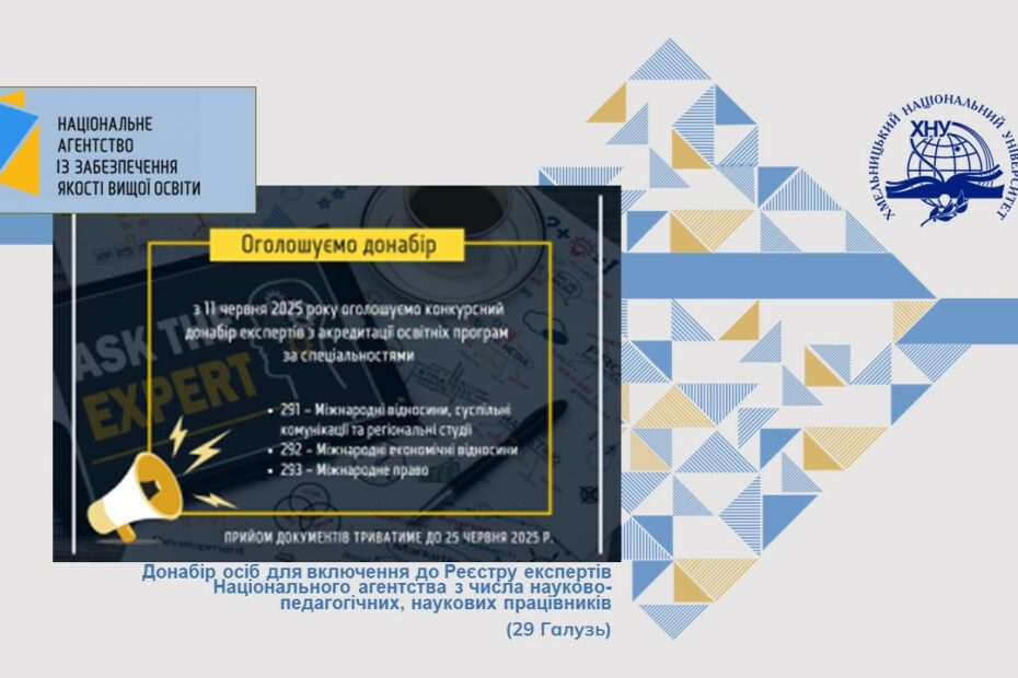 Анонс – Донабір осіб для включення до Реєстру експертів Національного агентства з числа науково-педагогічних, наукових працівників (29 Галузь)11.06.202504.08.2025