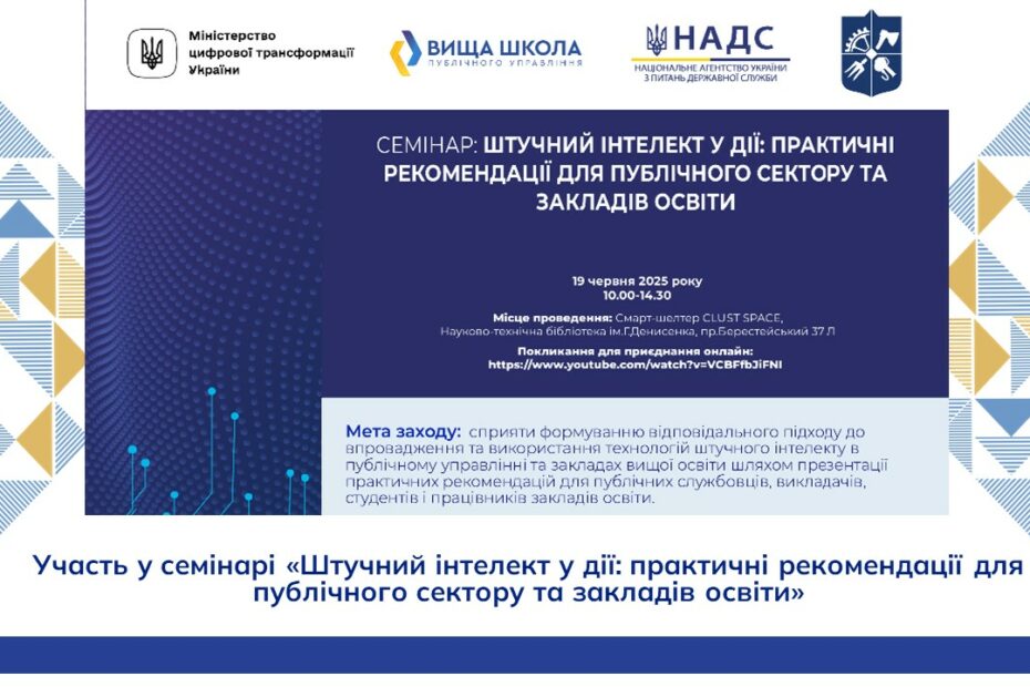Участь у семінарі «Штучний інтелект у дії: практичні рекомендації для публічного сектору та закладів освіти»19.06.202504.08.2025