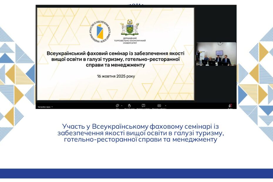 Участь у Всеукраїнському фаховому семінарі із забезпечення якості вищої освіти в галузі туризму, готельно-ресторанної справи та менеджменту16.10.202523.10.2025