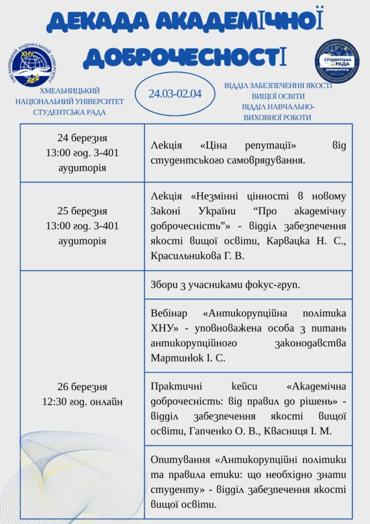 Білик В.В. ЗБОРИ З ОБГОВОРЕННЯ ПРОЕКТУ «КОДЕКСУ АКАДЕМІЧНОЇ ДОБРОЧЕСНОСТІ» УЧАСНИКІВ ОСВІТНЬОГО ПРОЦЕСУ