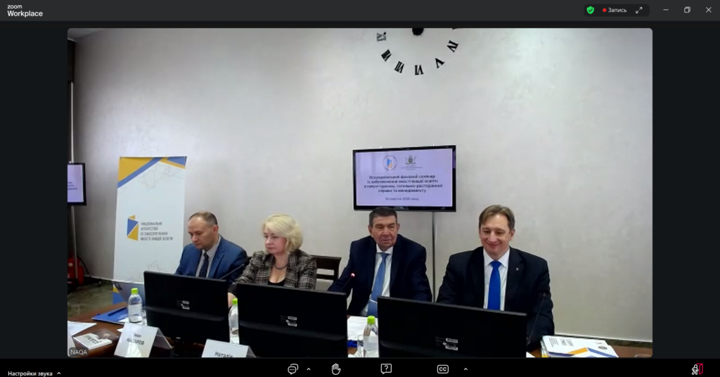Спікерами семінару виступили: ректор ДТЕУ Анатолій Мазаракі, який ознайомив учасників із діяльністю університету; Голова Національного агентства Андрій Бутенко із доповіддю про результати зовнішнього оцінювання в галузях 07 «Управління та адміністрування» та 24 «Сфера обслуговування»; заступник Голови Національного агентства Іван Назаров, який розкрив ключові аспекти постакредитаційного моніторингу; голова галузевої експертної ради 24 «Сфера обслуговування» – Мирослава Босовська, голова галузевої експертної ради 7.1 «Управління та адміністрування» Наталія Шалімова, голова галузевої експертної ради 7.2 «Управління та адміністрування» Ірина Труніна, які окреслили галузеві особливості забезпечення якості освітніх програм; гарант ОП «Готельний та ресторанний девелопмент» і декан факультету технологій та бізнесу ДТЕУ Надія Ведмідь представила зразкові практики реалізації освітніх програм ДТЕУ.