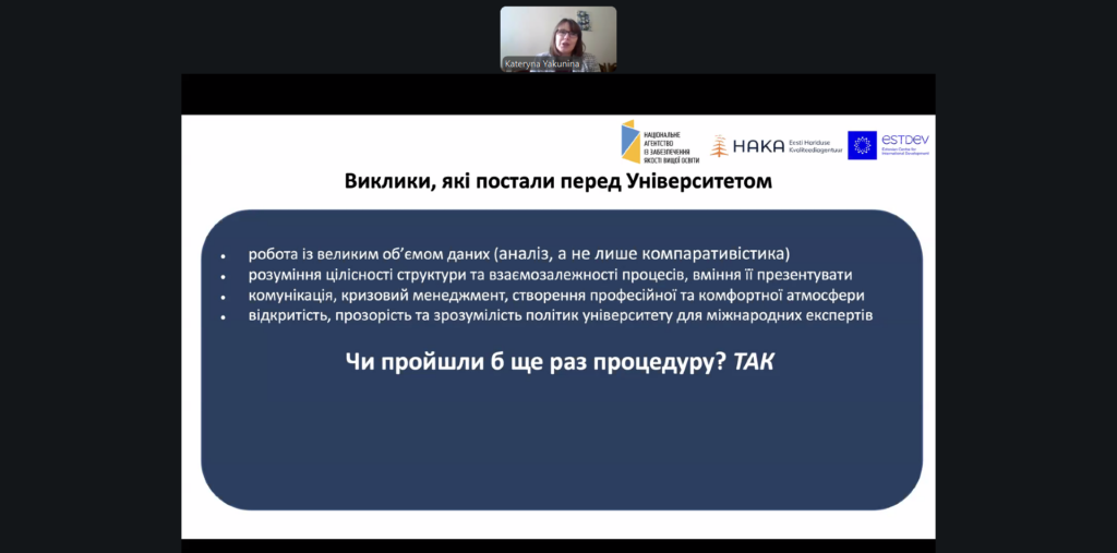 Захід став майданчиком для обміну цінним досвідом, який допоможе іншим українським університетам ефективно готуватися до міжнародної інституційної акредитації.